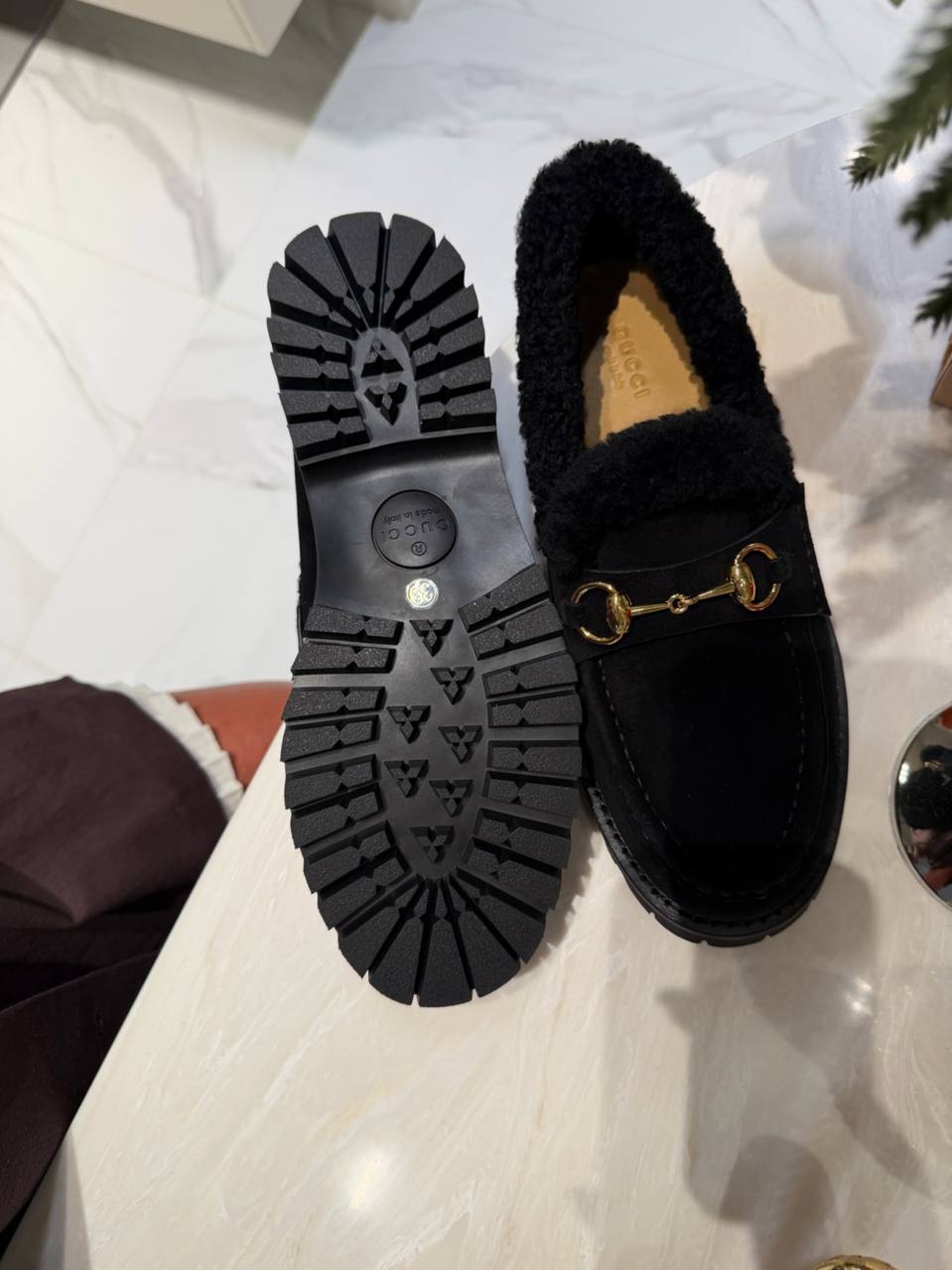 Исключительный стиль: Меховые лоферы BMS-152892 от Gucci
