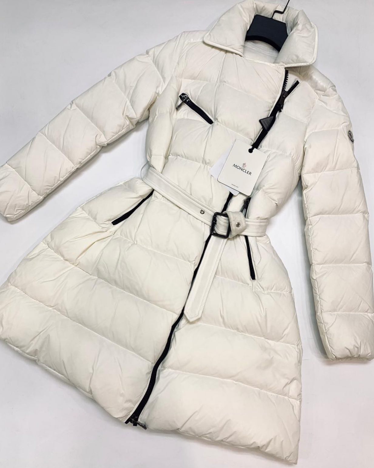Пальто Moncler BMS-61774 — это элегантное зимнее пальто в классическом стиле, выполненное в кремовом цвете с контрастной черной отделкой. Стеганая текстура и поясок на талии создают женственный силуэт, идеально подходящий для создания стильных образов в холодное время года.