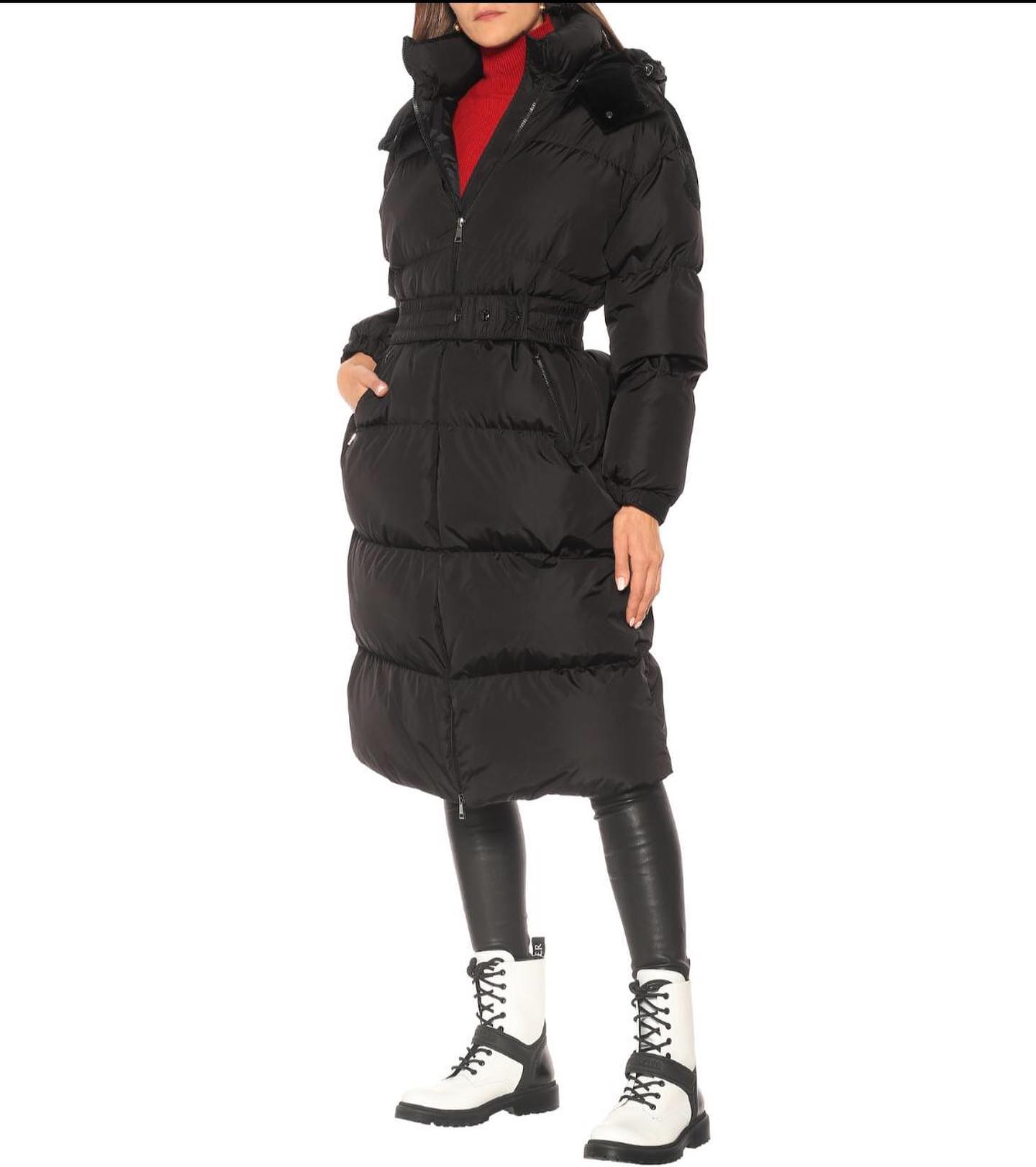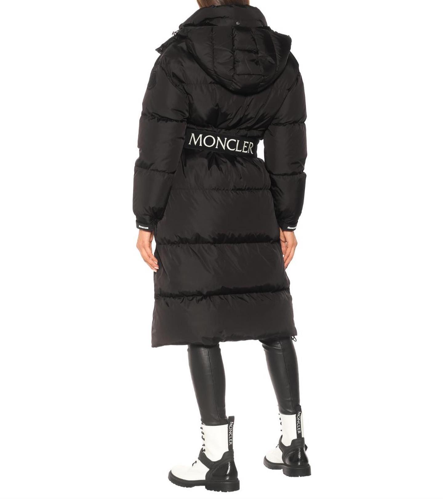 Элегантное черное пуховое пальто Moncler BMS-66797 с поясом идеально подойдет для стильных образов в холодное время года. Оно обладает выразительным дизайном с объемным капюшоном и стеганой текстурой, обеспечивая тепло и комфорт.