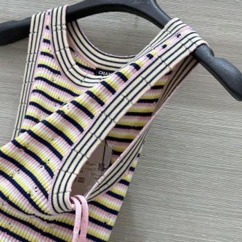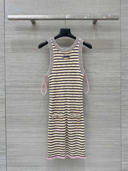 Платье BMS-141127 от Chanel — это стильное мини-платье в полоску, которое подчеркнет вашу индивидуальность и подарит комфорт. Его современный дизайн сочетает в себе элегантность и повседневный стиль, делая его идеальным выбором для различных мероприятий.