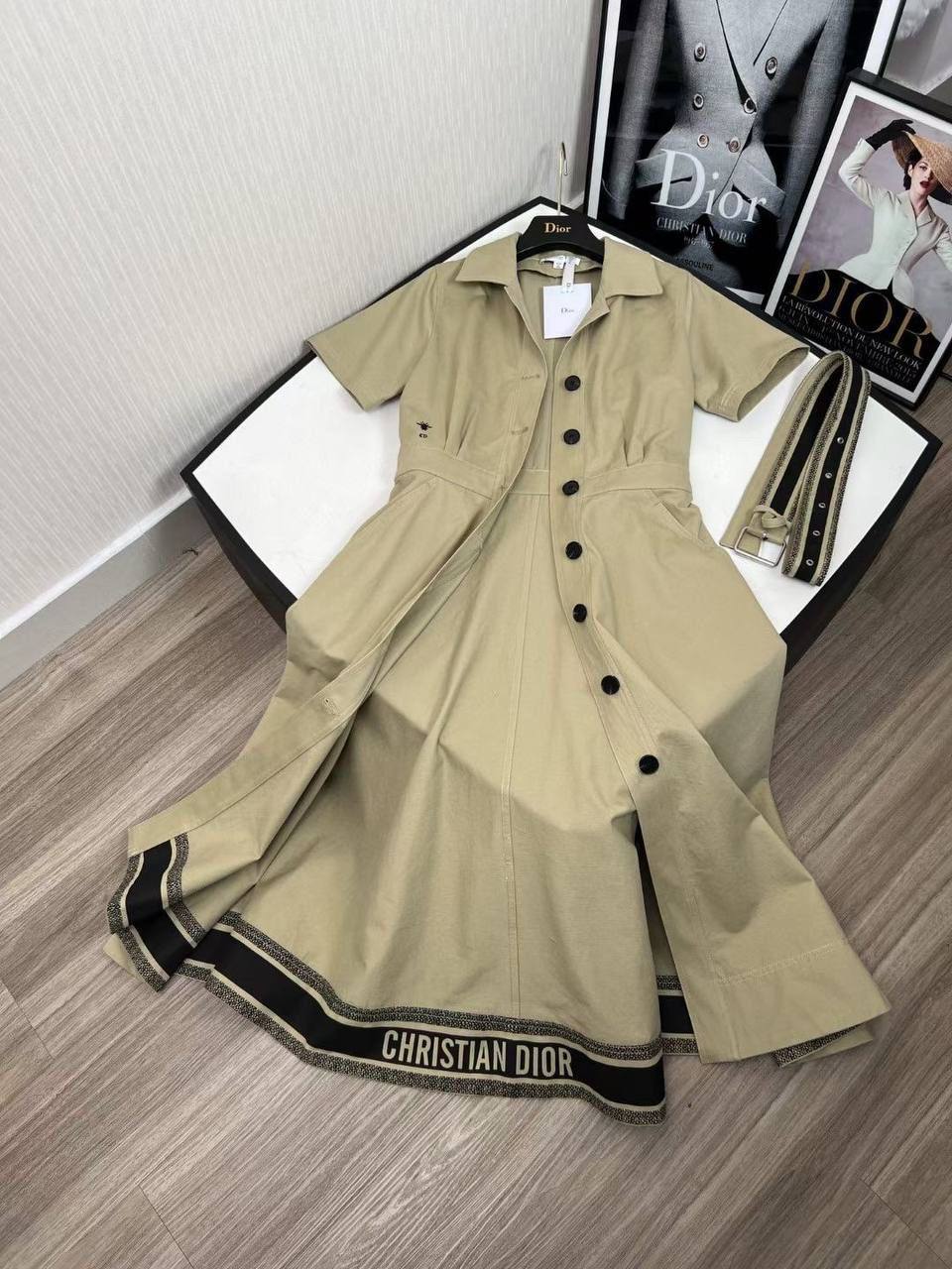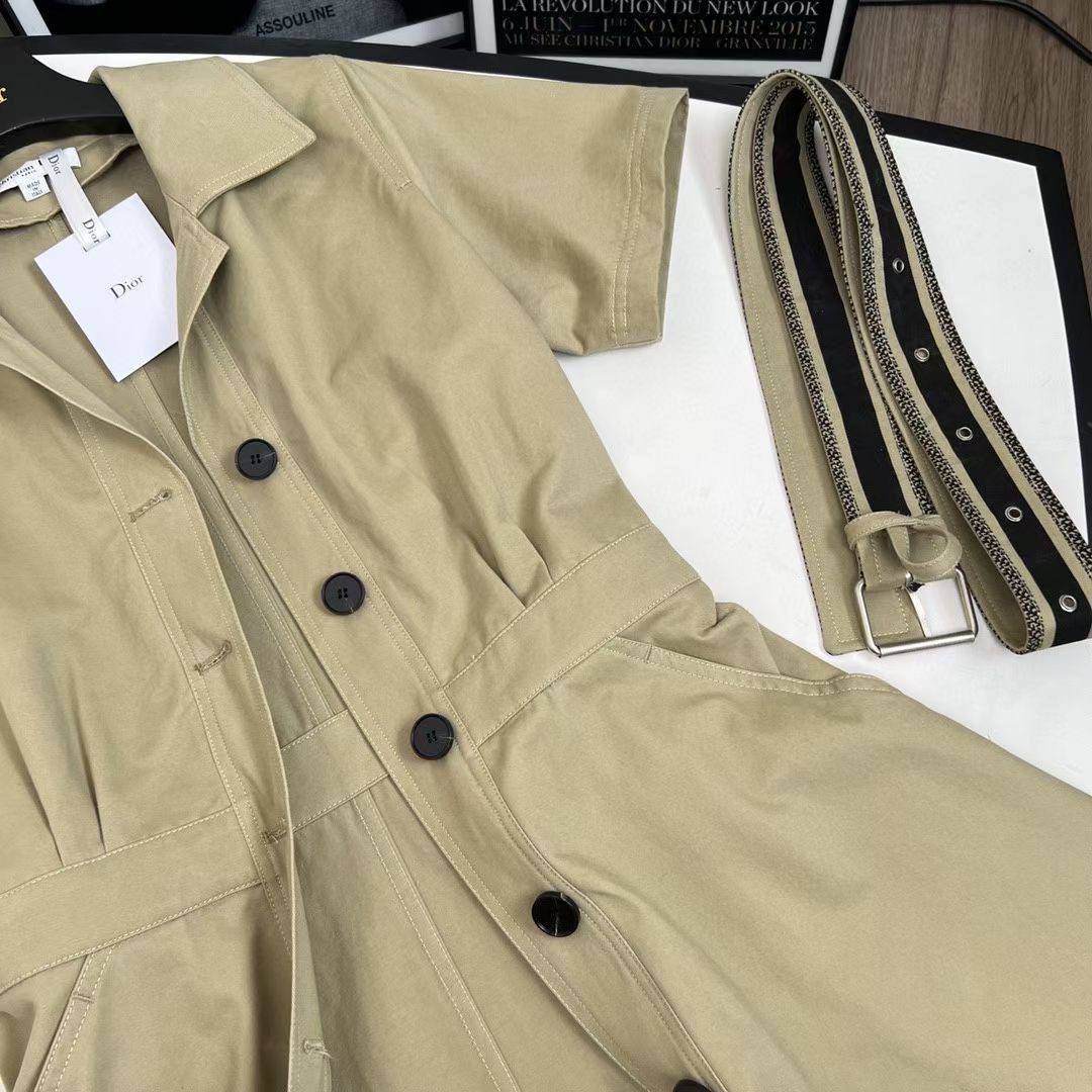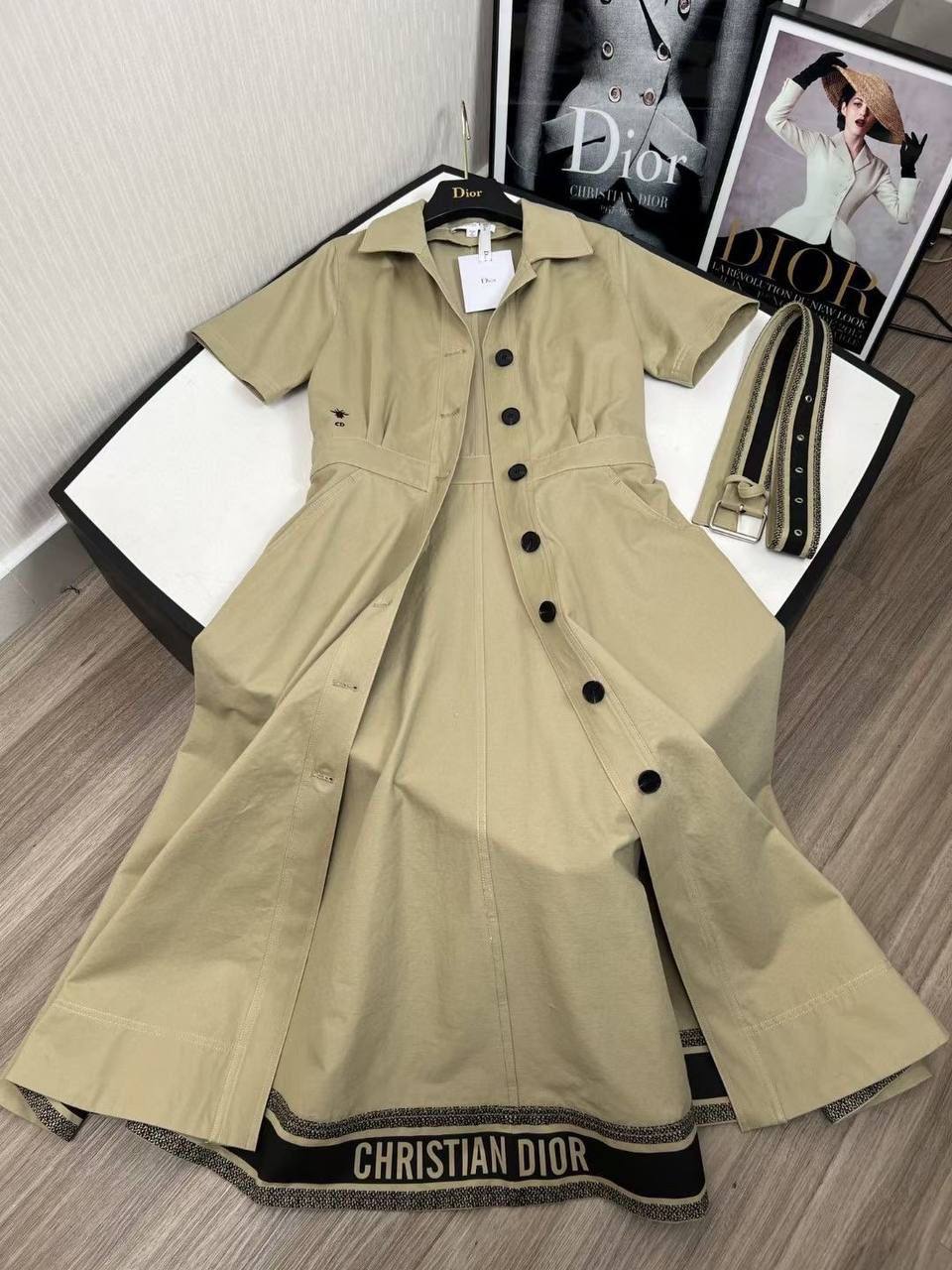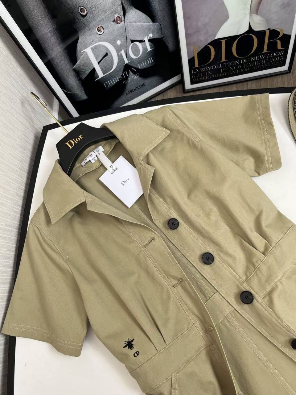 Платье Christian Dior BMS-155912 – это элегантное и стильное платье в рубашечном стиле. Изделие отличается лаконичным кроем и изысканными деталями, такими как надпись бренда по низу и акцентный пояс.