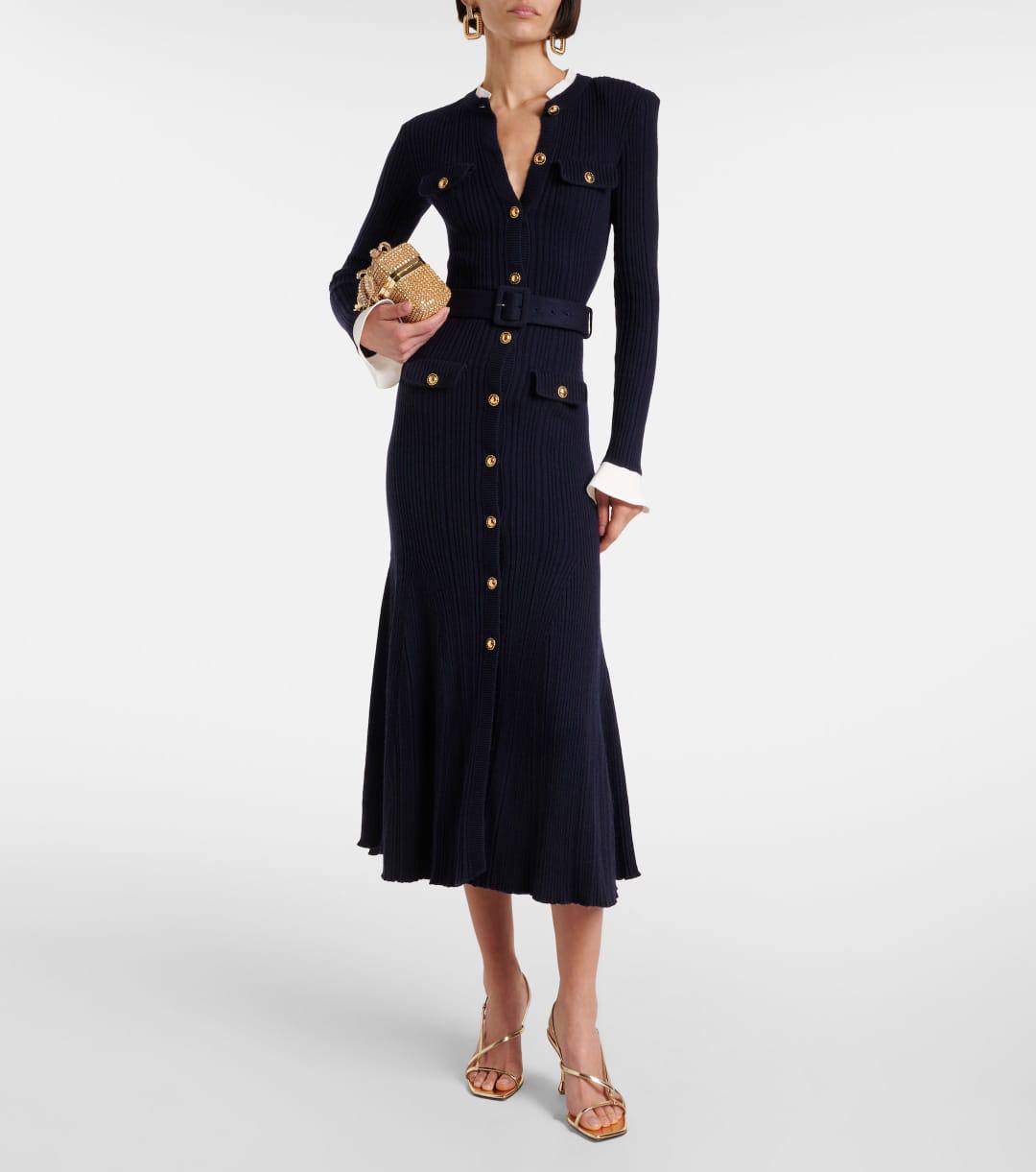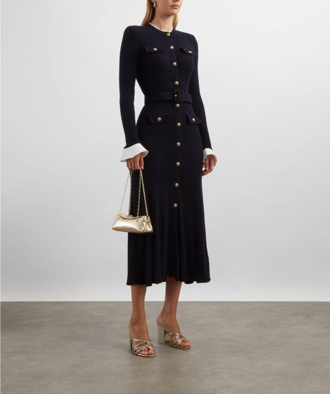 Платье Self-Portrait BMS-150608 – элегантное и изысканное платье-кардиган приталенного силуэта с длинными рукавами и золотистыми пуговицами. Этот наряд идеально подчеркнет вашу женственность и станет отличным выбором для особых случаев.