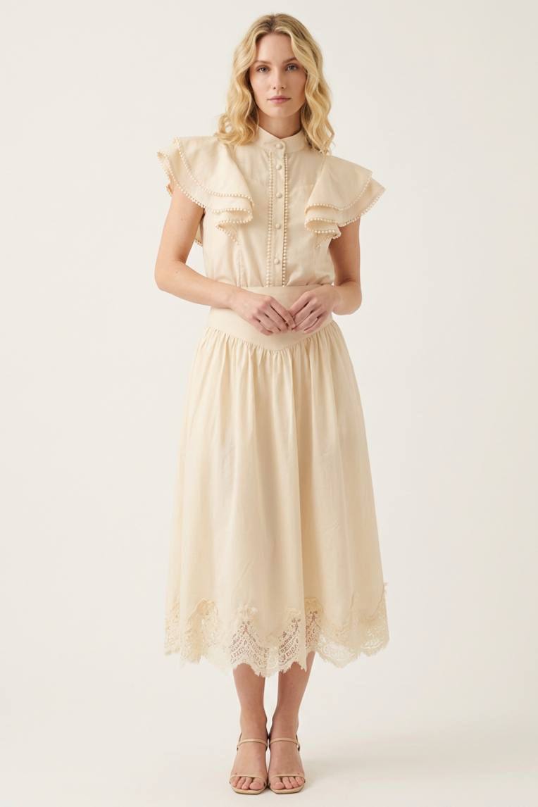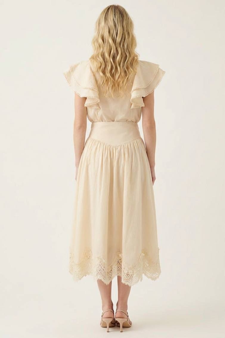Нежное и романтичное платье Zimmermann BMS-155614 идеально подойдет для создания женственного образа. Платье выполнено в светлых тонах, что добавляет ему легкости и воздушности. Прекрасный выбор для летних прогулок и особых случаев.