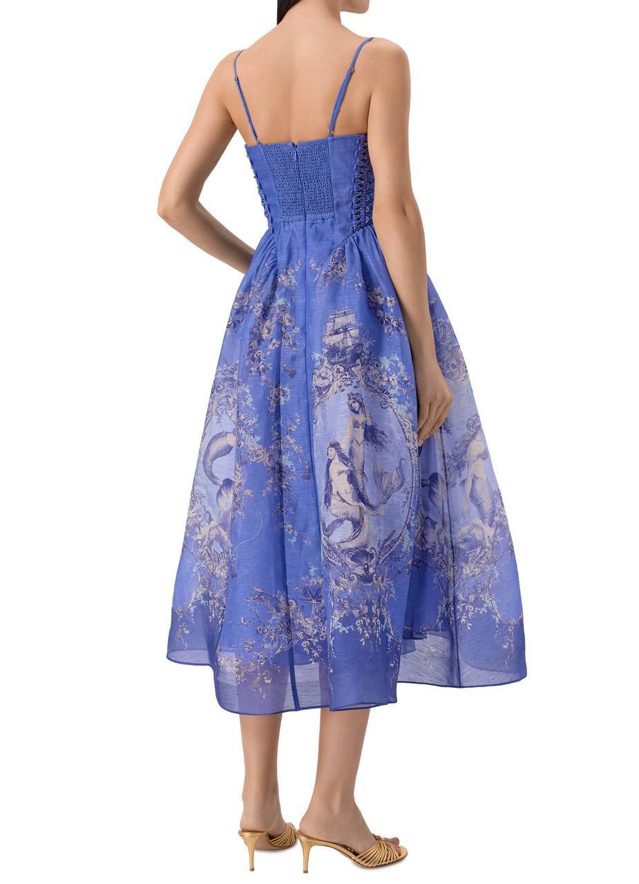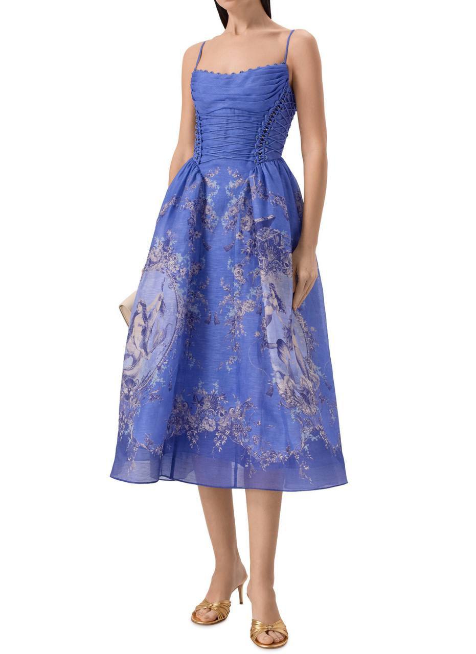 Платье Zimmermann BMS-155857 – это воплощение элегантности и женственности. Модель приталенного силуэта с пышной юбкой украшена оригинальным принтом, создавая романтичный и запоминающийся образ.