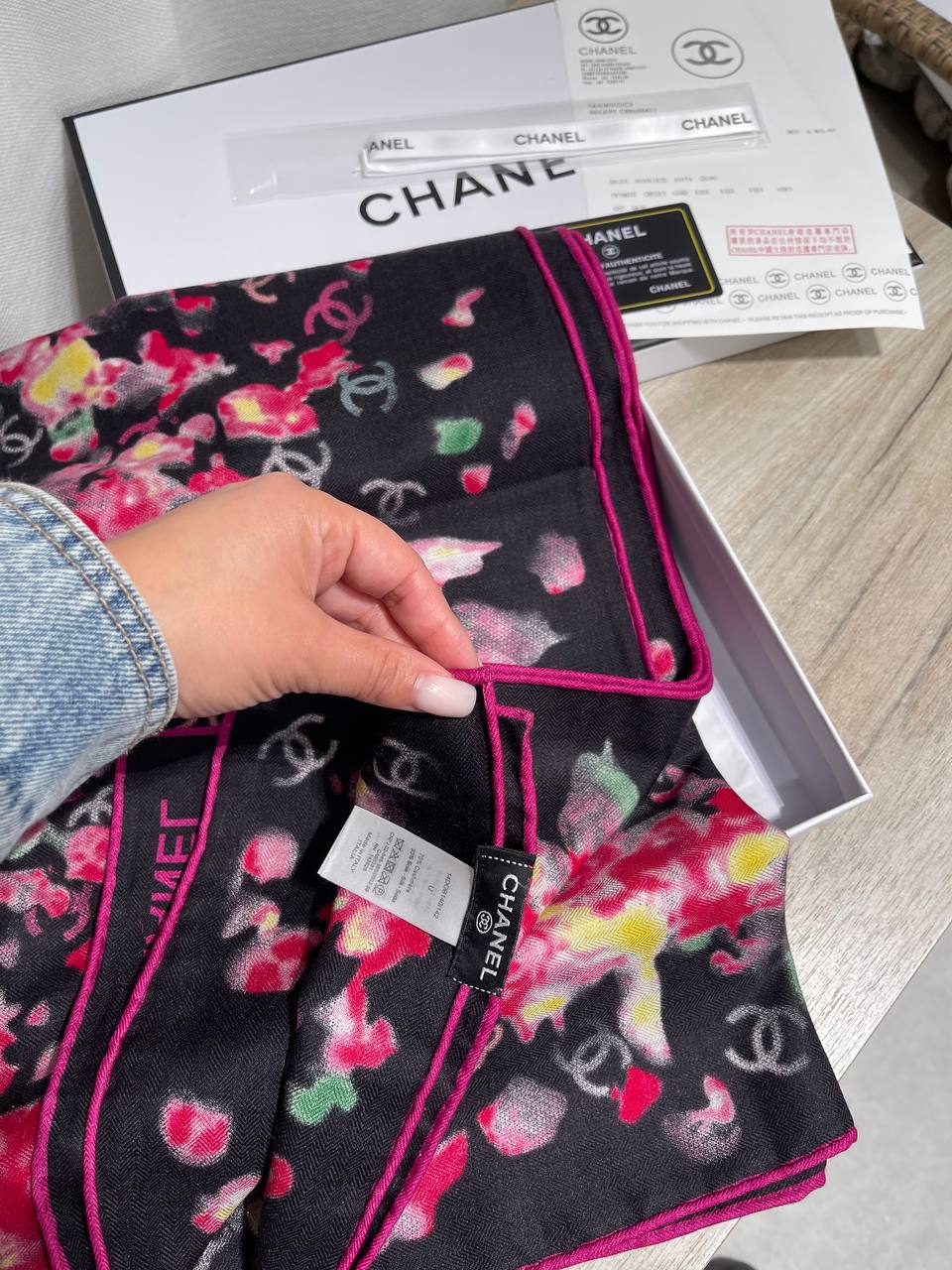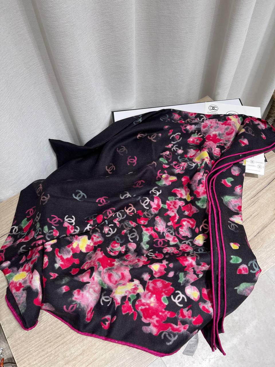 Платок Chanel BMS-151928 – это стильный аксессуар, который добавит элегантности любому образу. Платок выполнен в темных тонах с яркими цветочными мотивами и логотипами бренда.