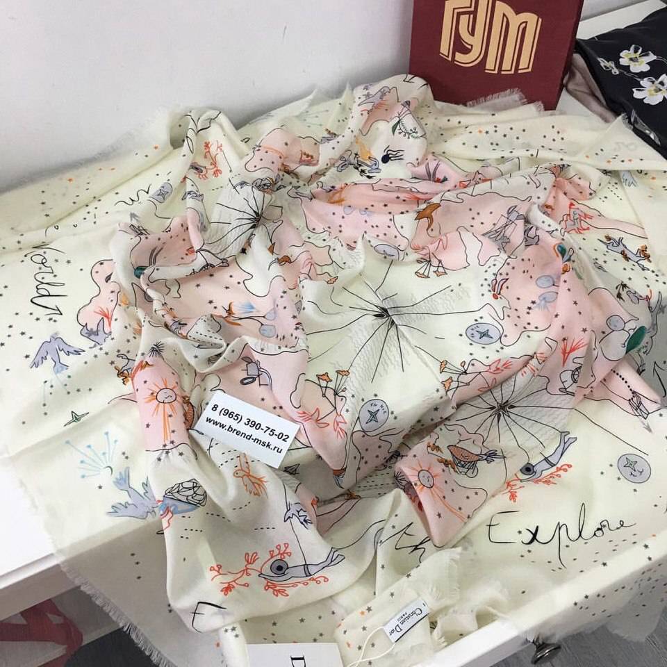 Шелковый платок Christian Dior aks-952 представляет собой изящное дополнение к любому образу, выполненное в нежных пастельных тонах с оригинальным принтом. Аксессуар украшен повторяющимся узором из фантазийных морских обитателей, птиц, зонтов и надписей, создавая ощущение легкости и игривости.