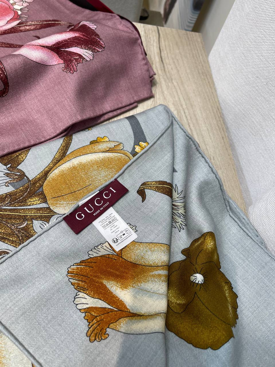 Платок Gucci BMS-155038 – элегантный аксессуар, который добавит изысканности любому образу. Нежный цветочный принт и приятная цветовая гамма делают его универсальным дополнением к гардеробу.