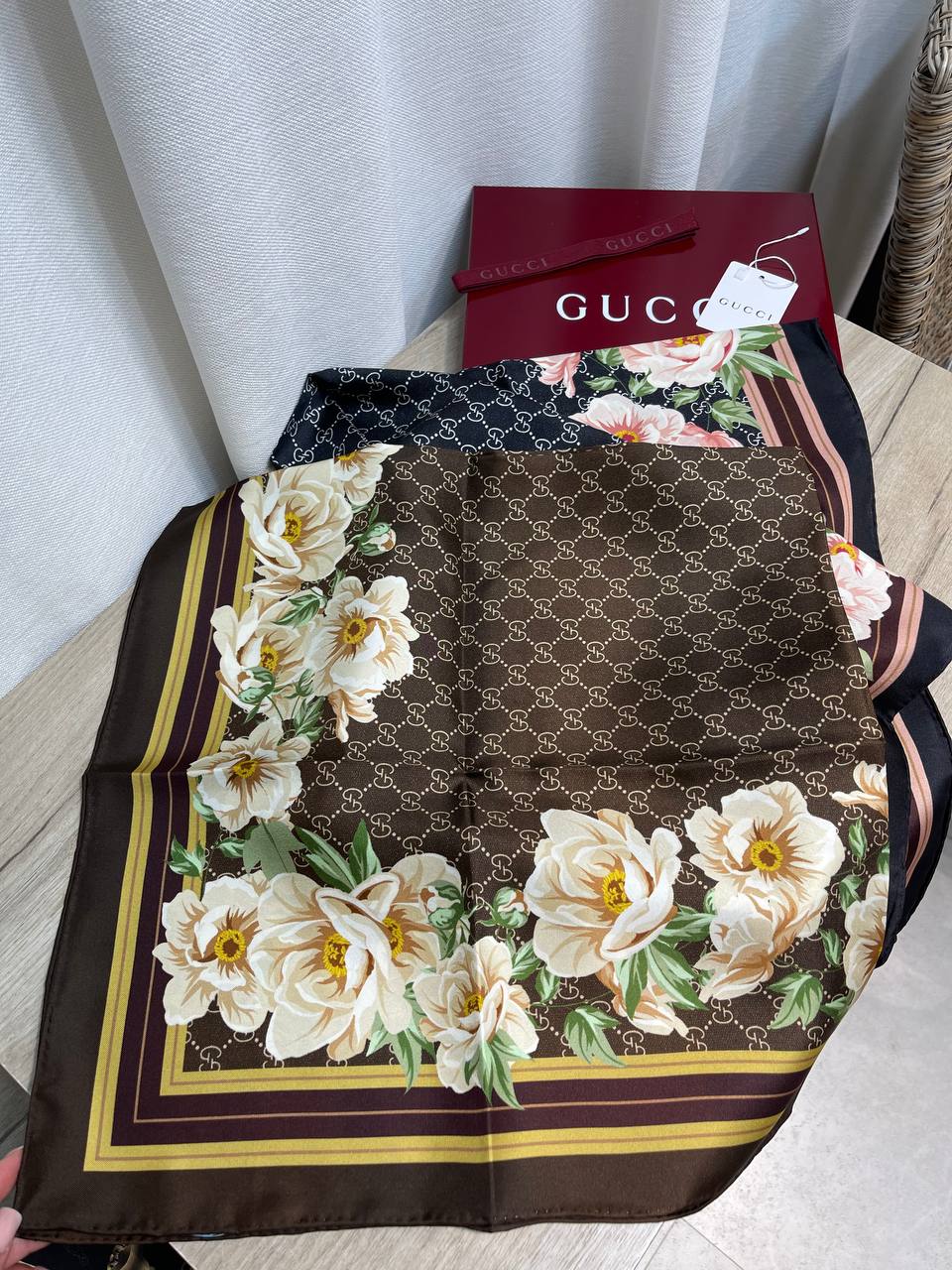 Элегантный платок Gucci BMS-155504 - стильный аксессуар, который дополнит ваш образ и подчеркнет индивидуальность. Платок выполнен в классическом стиле и отличается высоким качеством исполнения.