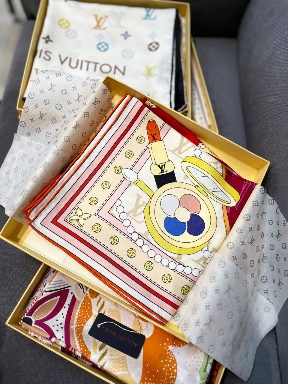 Платок Louis Vuitton BMS-155993 - это стильный и яркий аксессуар, который добавит изысканности в любой образ. Изделие выполнено с узнаваемым дизайном, сочетающим в себе элементы роскоши и утонченности.