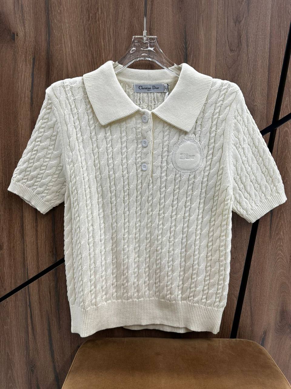 Поло Christian Dior BMS-156779 — это элегантный и стильный предмет гардероба, сочетающий в себе классический дизайн и современные тенденции. Вязаное поло с короткими рукавами и круглым логотипом бренда идеально подойдёт для создания утонченного образа.
