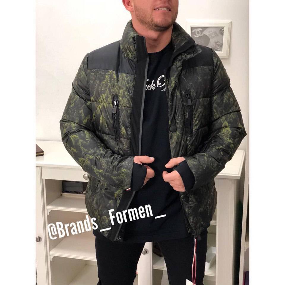 Стильный мужской пуховик Moncler ODM-967 в темно-зеленом цвете с камуфляжным принтом. Данная модель выполнена в современном дизайне и идеально подойдет для создания образа в стиле casual в прохладное время года.
