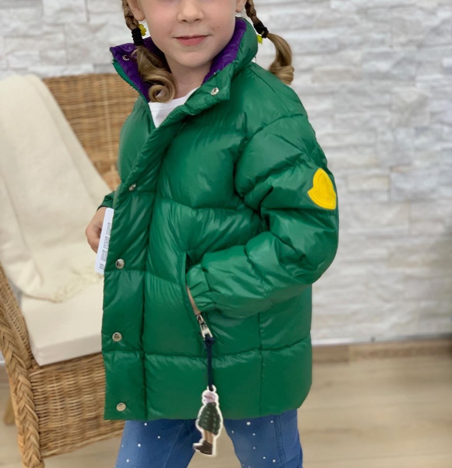 Этот детский пуховик Moncler BMS-31480 выполнен в ярком зеленом цвете с контрастной фиолетовой подкладкой. Его объемный силуэт и глянцевая поверхность делают его стильным выбором для прохладной погоды. Пуховик идеально подойдет для активных детей, обеспечивая тепло и комфорт на прогулках.
