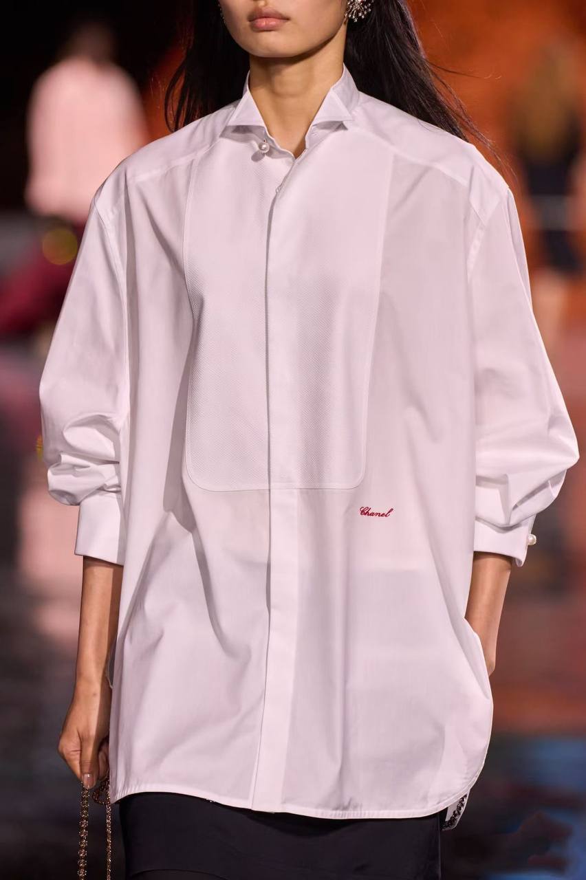 Рубашка Chanel BMS-156589 – это элегантная модель в классическом стиле, выполненная в светлых тонах. Она станет прекрасным дополнением к любому гардеробу, придавая образу изысканность.