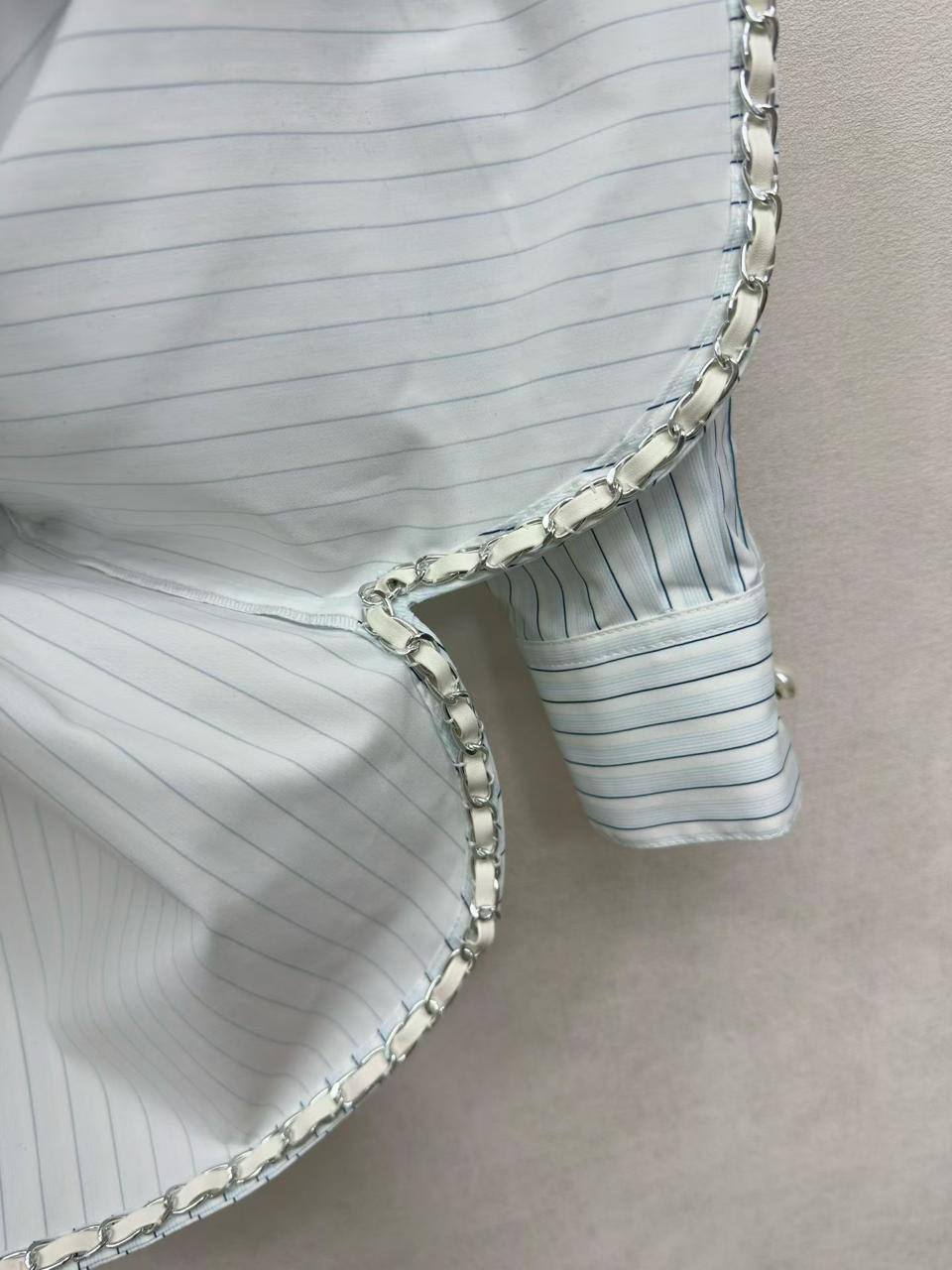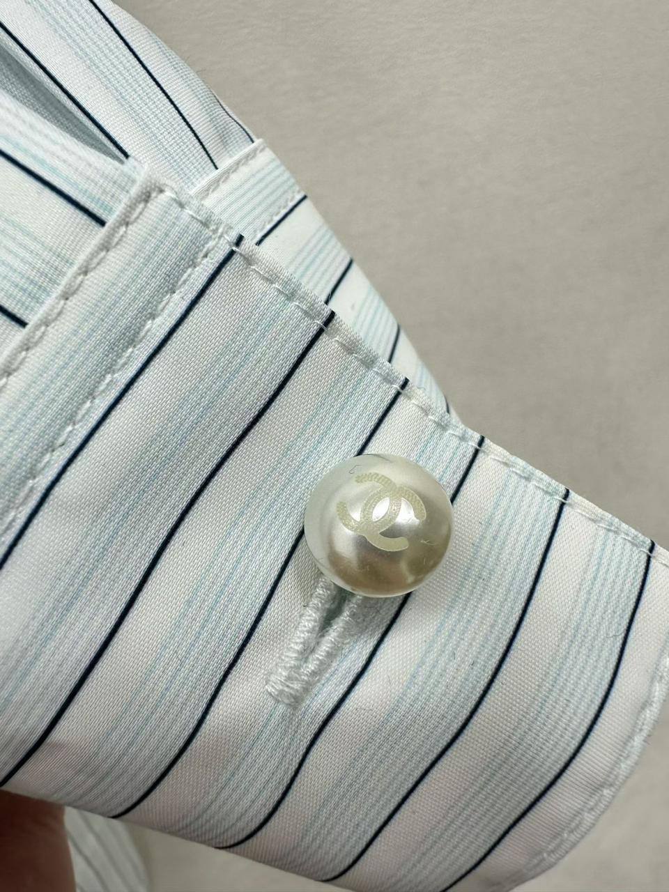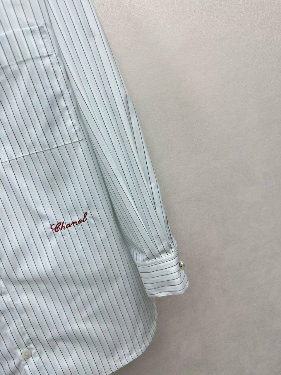 Рубашка Chanel BMS-156889 — это элегантный предмет гардероба, выполненный в классическом стиле с современными акцентами. Прямой силуэт, полосатый узор и наличие накладных карманов создают стильный и непринужденный образ.