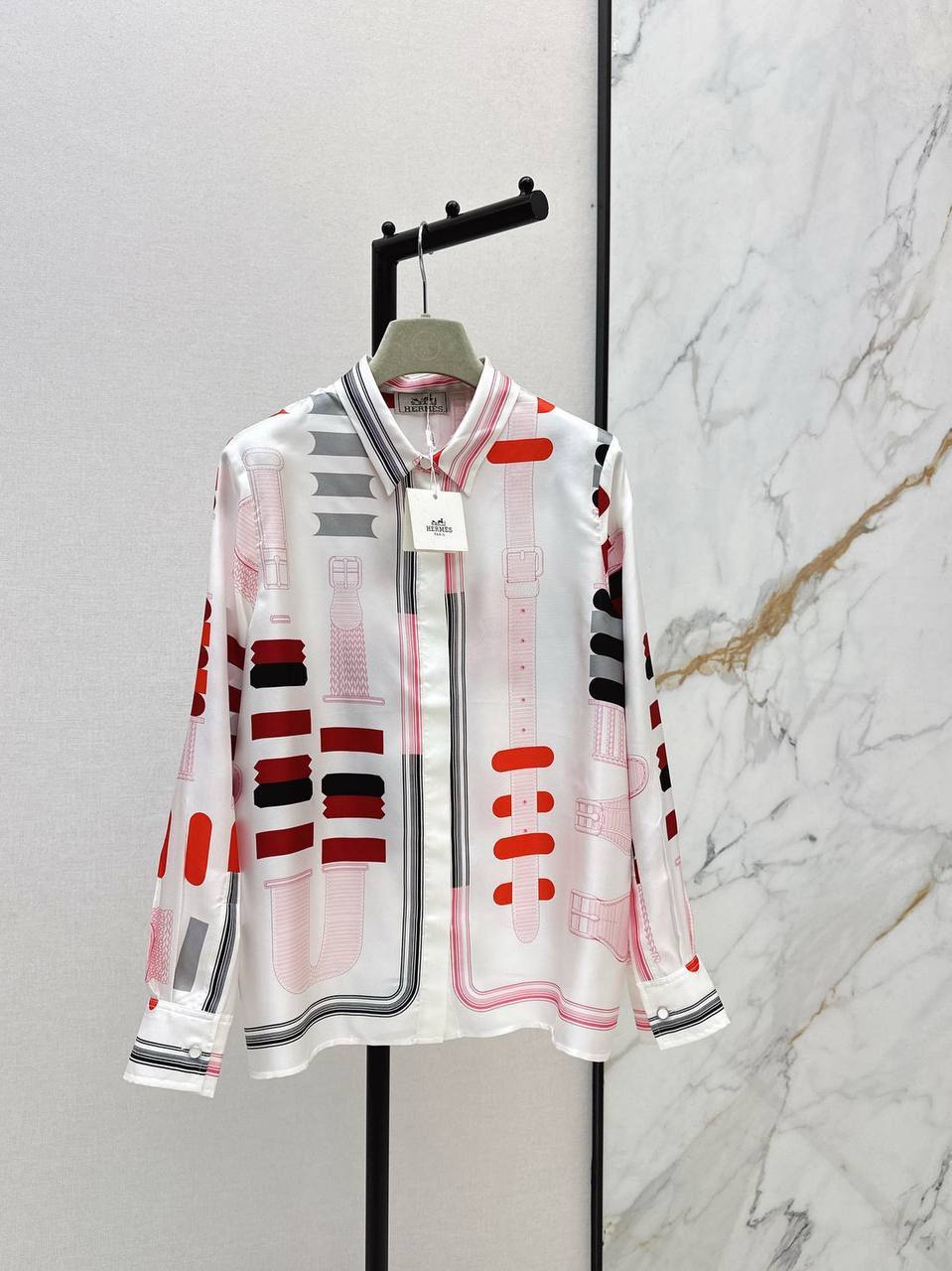 Рубашка Hermes BMS-155859 представляет собой стильный и элегантный предмет гардероба. Она выполнена с оригинальным принтом, что делает ее привлекательной и запоминающейся. Отлично подойдет для создания модных и женственных образов.