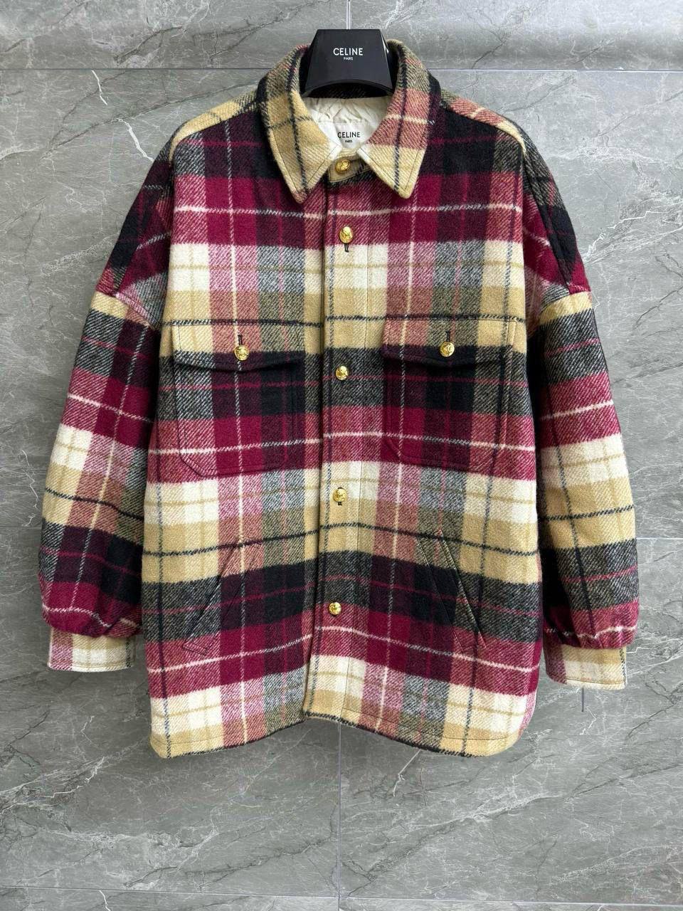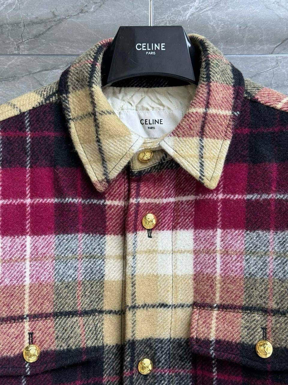 Рубашка-куртка Celine BMS-149716 - это стильный предмет гардероба, сочетающий в себе элементы рубашки и куртки. Отличается свободным кроем и оригинальным дизайном в клетку, что делает её отличным выбором для создания модных и комфортных образов.
