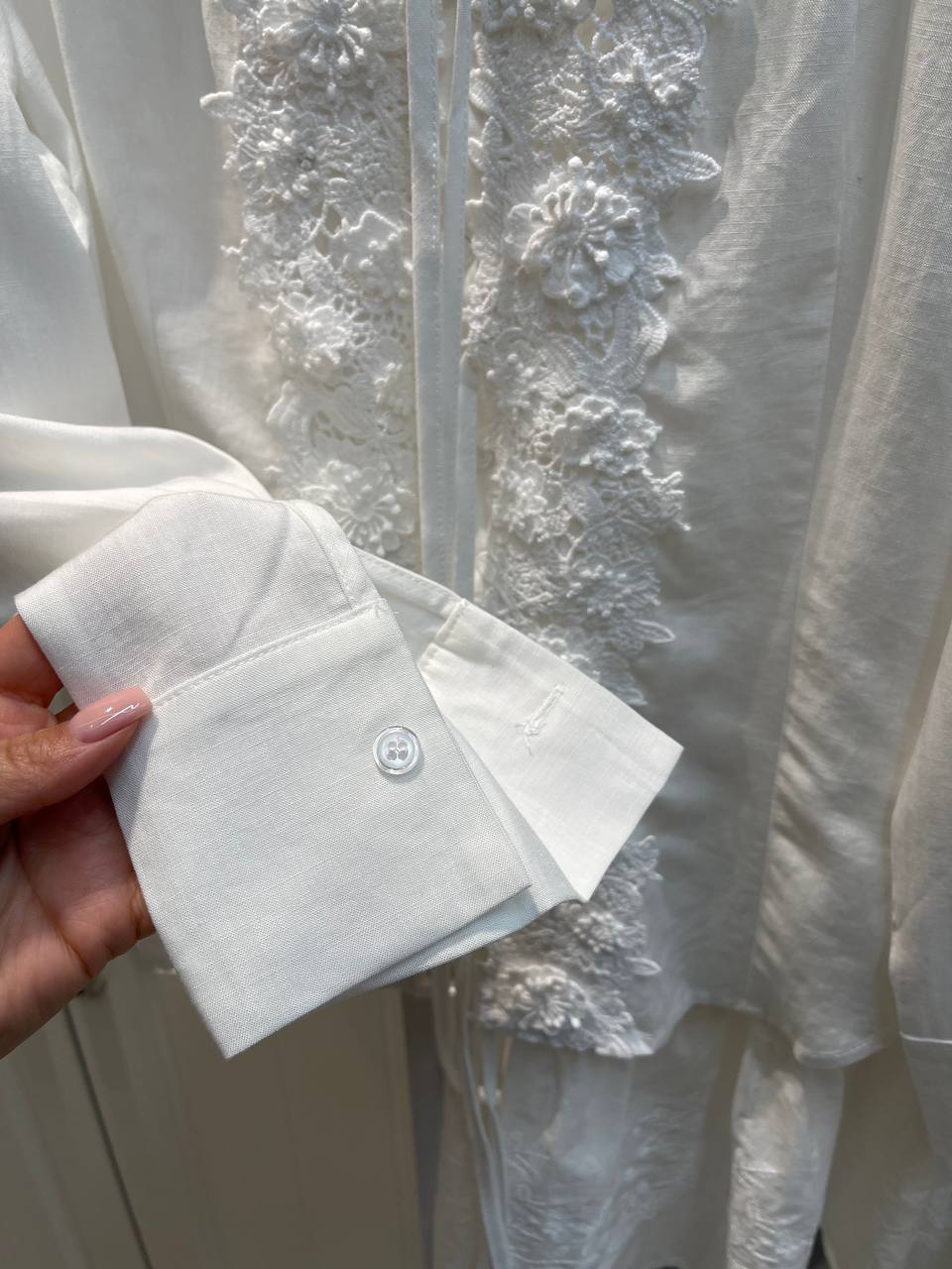Нежная и романтичная рубашка Zimmermann BMS-156397, выполненная в белом цвете, станет прекрасным дополнением к летнему гардеробу. Модель отличается изысканной отделкой и утонченным дизайном.