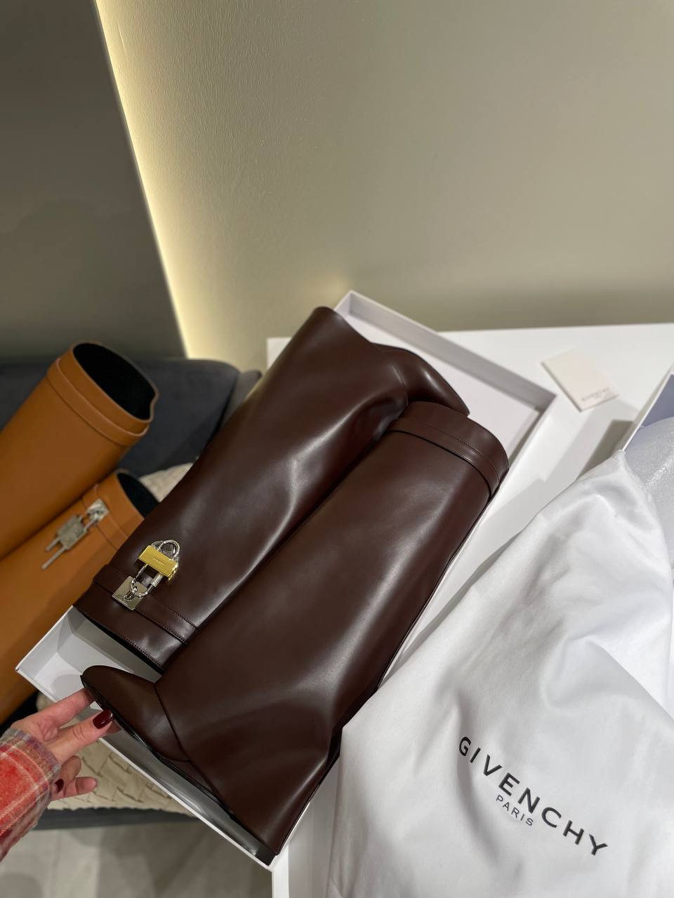 Элегантные сапоги от Givenchy станут ярким акцентом в вашем образе. Изысканный дизайн и высокое качество исполнения делают их идеальным выбором для стильных и уверенных в себе женщин.