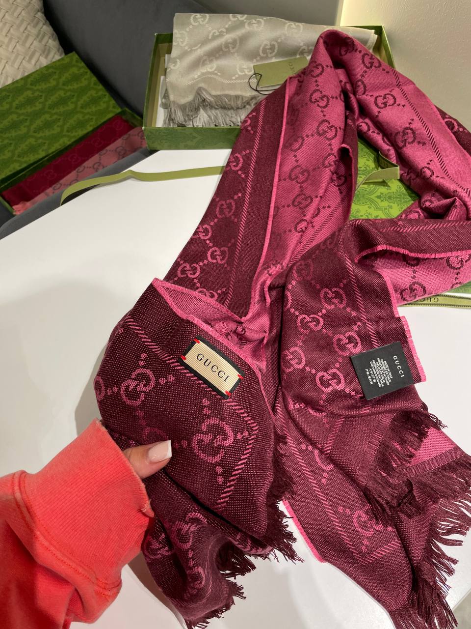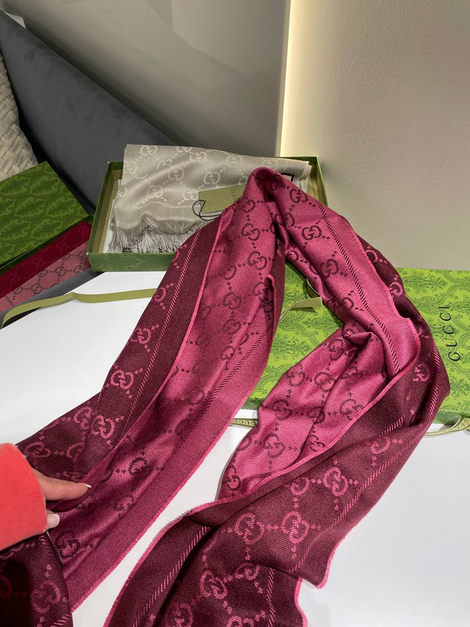 Аксессуары от известного бренда Gucci, подчеркнет ваш уникальный стиль. Шарф BMS-150833 изготавливают из премиальных материалов, что гарантирует исключительное качество и долговечность. Каждый элемент продукта тщательно проработан, чтобы обеспечить вам комфорт и уверенность в любой ситуации. 🌟Быстрая и надежная доставка