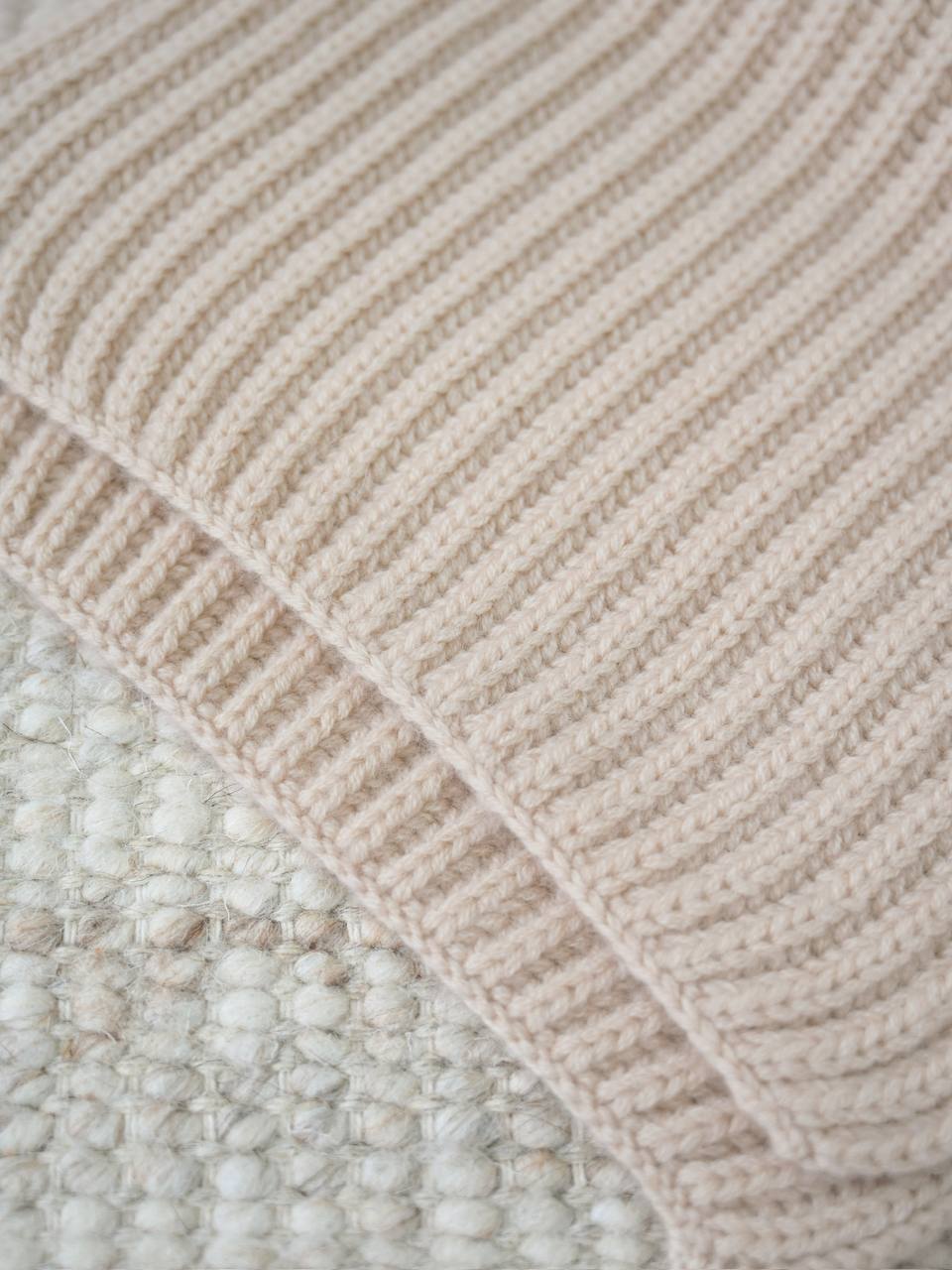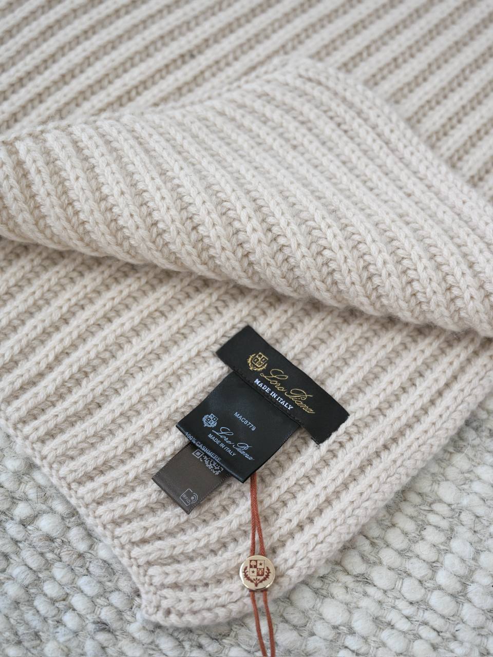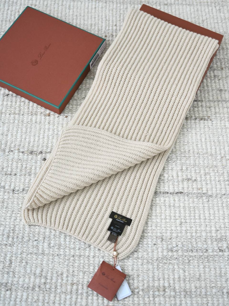 Шарф , сотканный классической рыбацкой вязкой «рубчик», выполнен из обволакивающего кашемира, выбранного за теплоту и приятные тактильные ощущения.