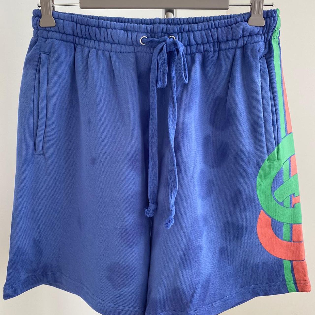 Данные шорты Gucci BMS-55895 представлены в насыщенном синем цвете с оригинальным принтом в виде переплетающихся букв "G" и полос. Эластичный пояс со шнурком обеспечивает идеальную посадку, а свободный крой гарантирует комфорт при повседневной носке. Эти шорты идеально подойдут для создания стильных образов в спортивном или расслабленном стиле.