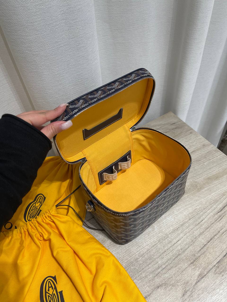 Сумка-косметичка Goyard BMS-151973 - стильный и практичный аксессуар для хранения косметики и других мелочей. Благодаря своему компактному размеру и удобной форме, она идеально подходит для путешествий и повседневного использования.
