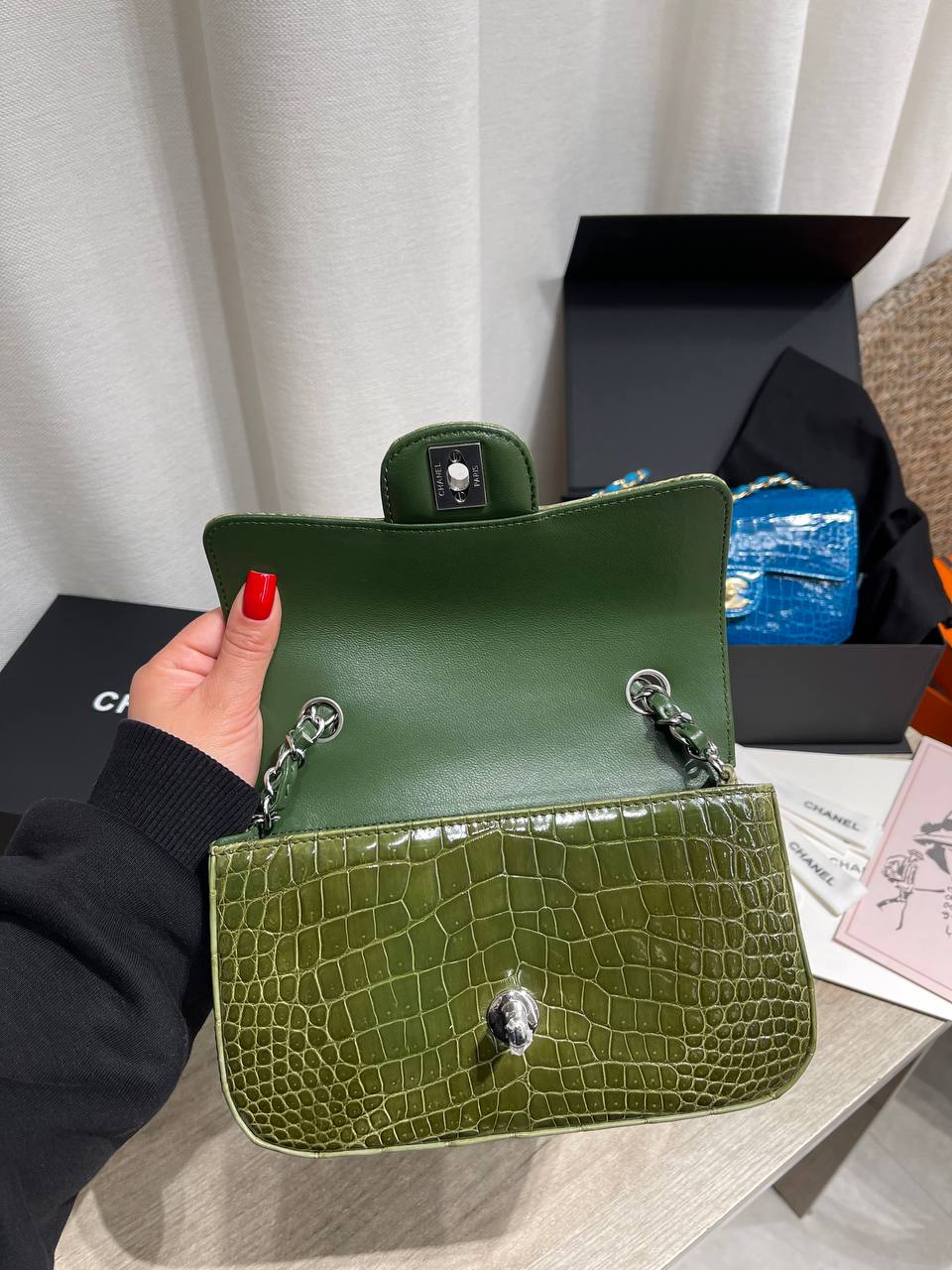 Сумка Chanel 2.55 в размере 20 см (s) из крокодиловой кожи -это редкие, дорогие люксовые изделия , которые выпускаются из натуральной кожи крокодила , а не из кожи какой-то конкретной ,,породы,, ( используют аллигатора/ каймана)