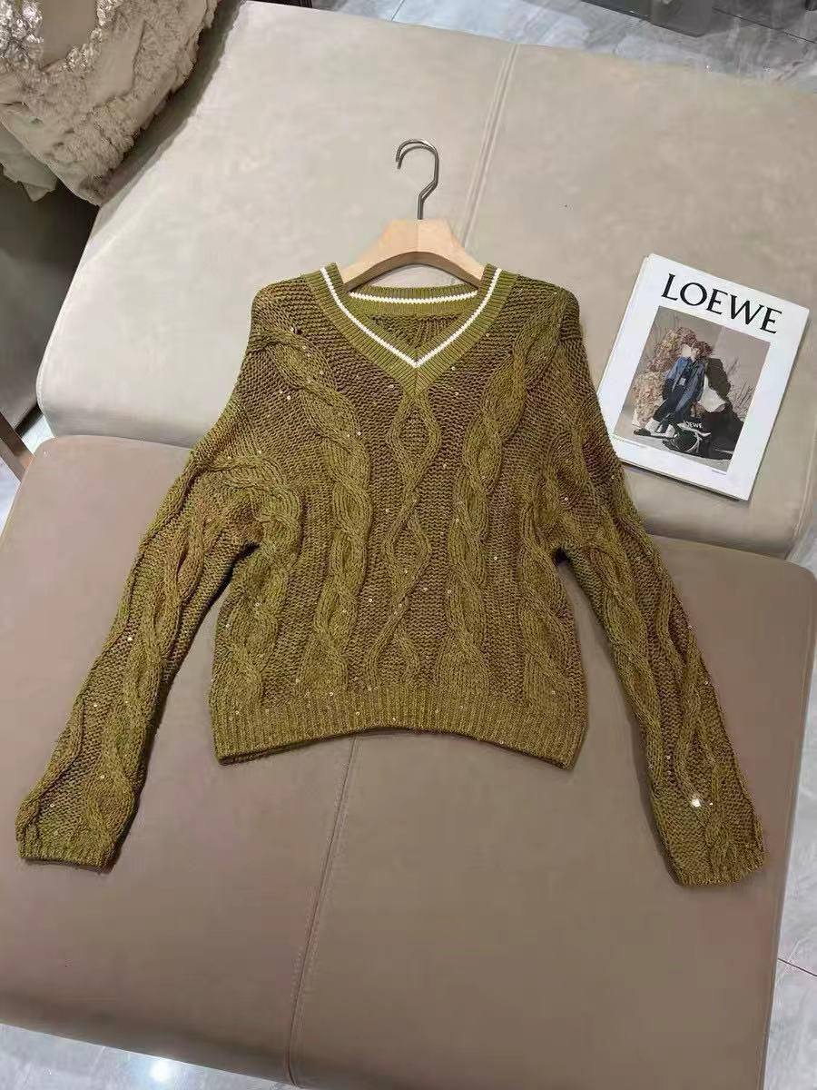 Свитер Brunello Cucinelli BMS-155431 выполнен в непринужденном стиле. Модель с V-образным вырезом и длинными рукавами станет отличным дополнением к повседневному гардеробу.
