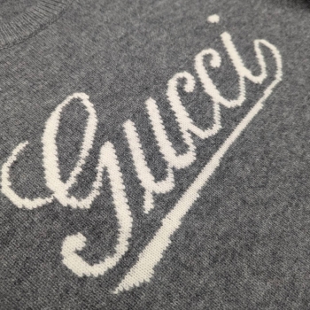 Свитер Gucci BMS-138017 — это стильный предмет гардероба в современном стиле. Серый свитер с круглым вырезом декорирован надписью Gucci.