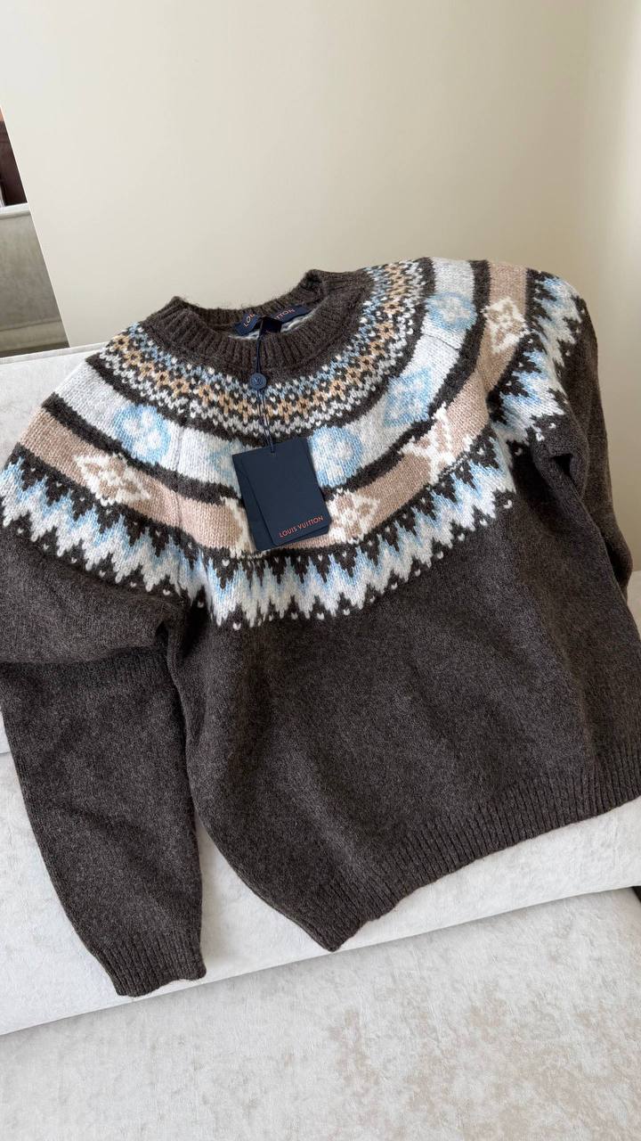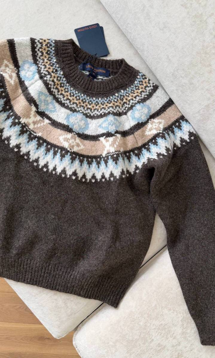 Свитер Louis Vuitton BMS-153287 выполнен в этническом стиле с оригинальным узором на кокетке. Это уютный и стильный выбор для создания расслабленных образов в холодное время года.