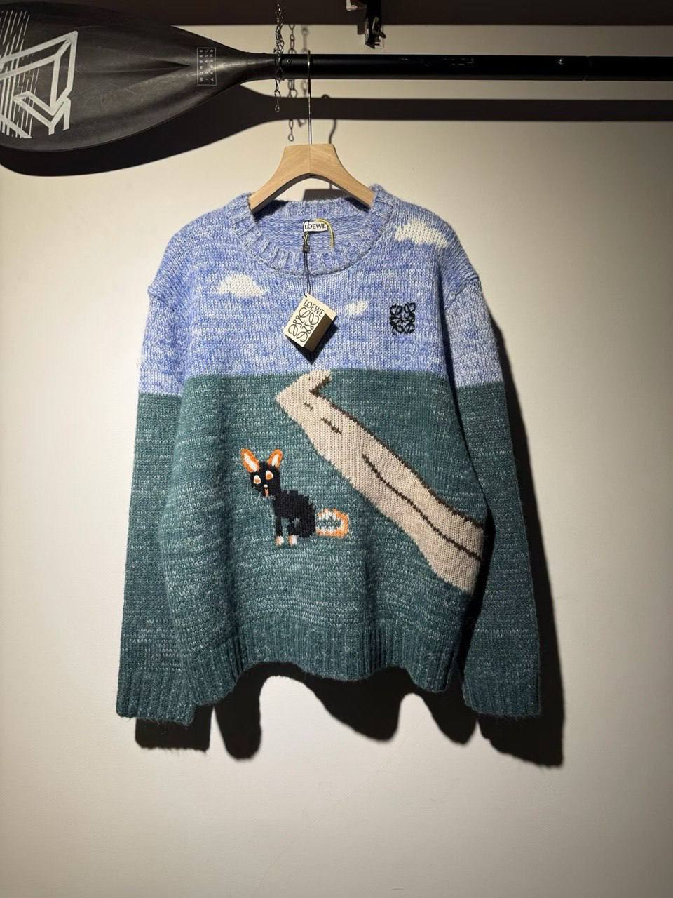 Свитер Loewe BMS-154415 - это стильный и оригинальный выбор для мужчин, ценящих комфорт и индивидуальность. Свободный крой и мягкий материал обеспечивают удобство в носке, а необычный дизайн с котом и пейзажем добавляет образу изюминку.
