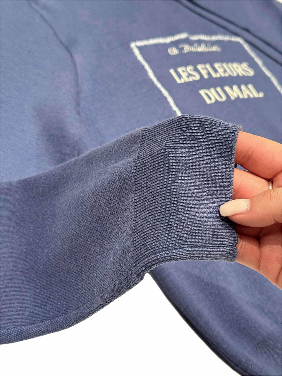 Свитер женский Christian Dior BMS-156272 с капюшоном – это стильный и комфортный элемент гардероба. Модель выполнена в синем цвете и украшена надписью "Les Fleurs du Mal" и логотипом Dior.