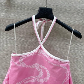 Топ Chanel (артикул BMS-145578) представляет собой воплощение элегантности и стиля. Яркий розовый цвет топа украшен белым цветочным принтом и знаковым логотипом бренда.
