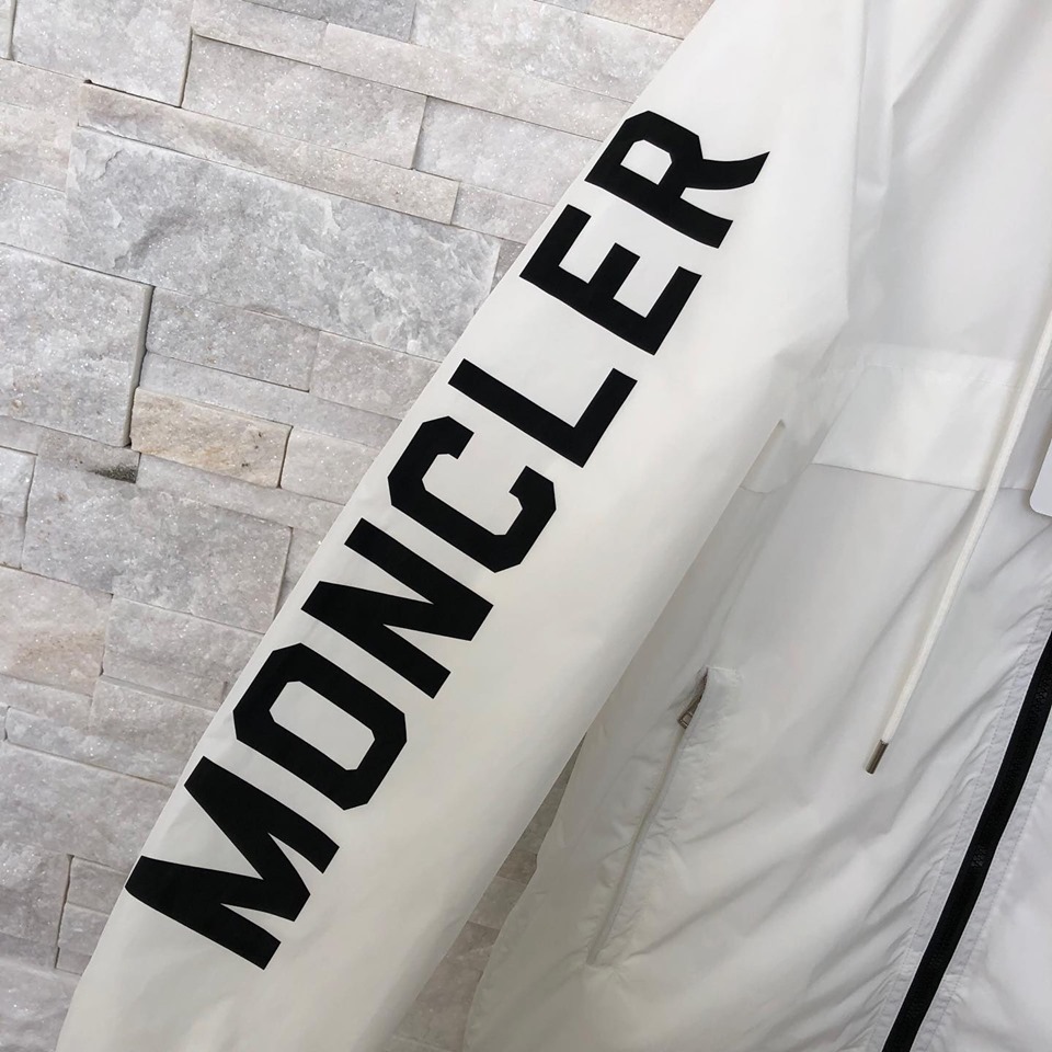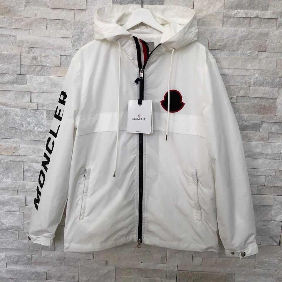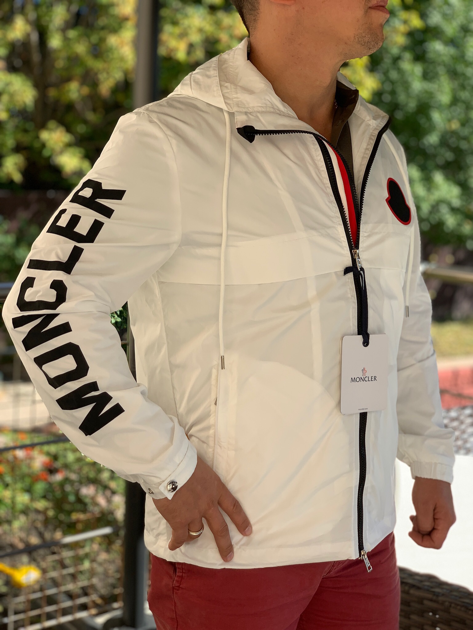 Эта белая ветровка Moncler BMS-42609 является стильным и практичным решением для современного гардероба. Модель с капюшоном и контрастным логотипом на рукаве идеально подходит для переменчивой погоды.