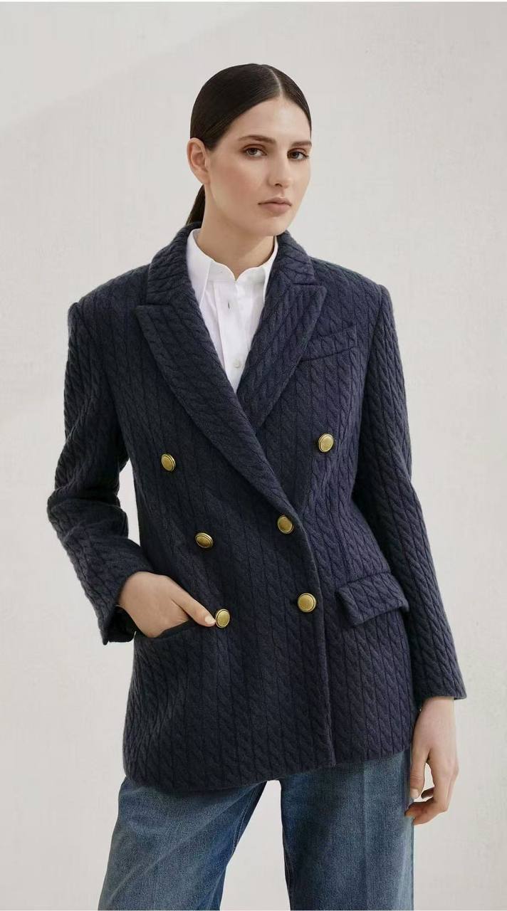 Жакет BMS-149065 — это стильный предмет гардероба, представляющий собой элегантный жакет в классическом стиле. Жакет имеет двубортный крой с золотистыми пуговицами и оригинальной текстурой ткани.