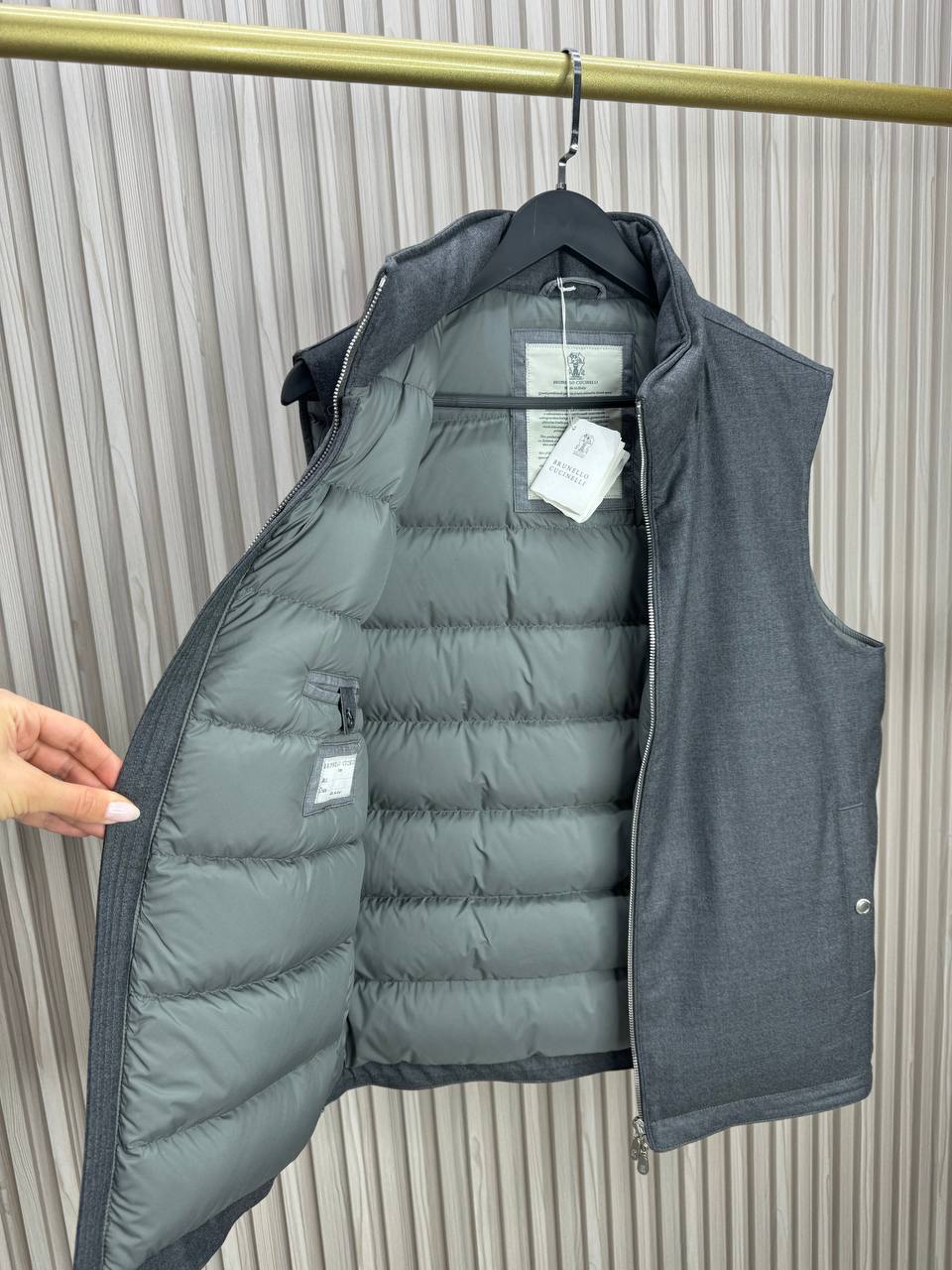 Стильный мужской жилет Brunello Cucinelli BMS-153581 – прекрасный выбор для создания элегантного и практичного образа. Он сочетает в себе комфорт и изысканность, что делает его идеальным для повседневной носки.