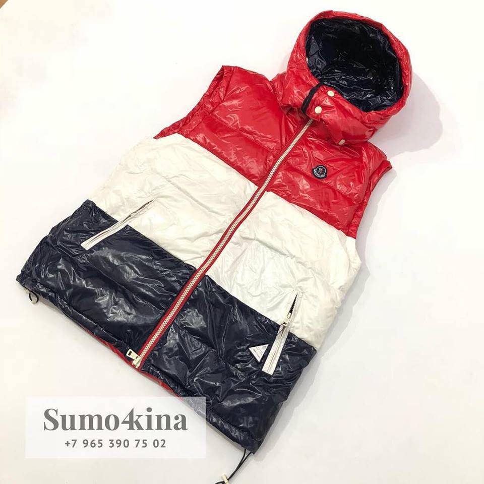 Жилет мужской Moncler BMS-24360 — это стильная и практичная модель в яркой трехцветной расцветке (красный, белый, темно-синий). Жилет с капюшоном и глянцевой поверхностью идеально подойдет для создания современных повседневных образов в холодное время года, обеспечивая комфорт и тепло.